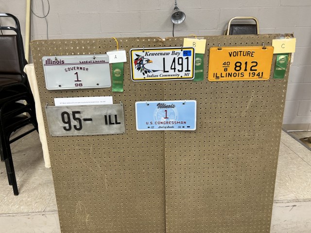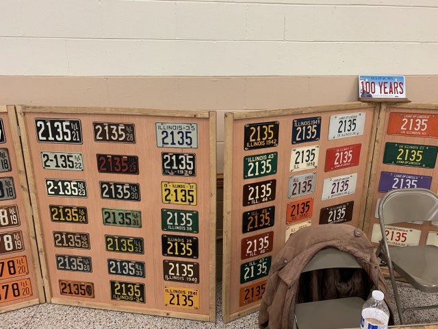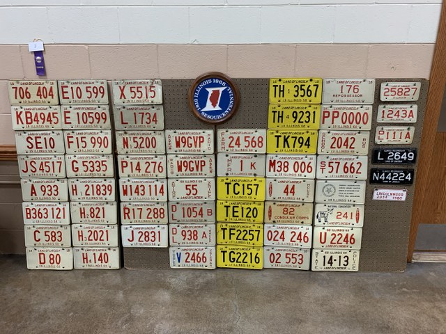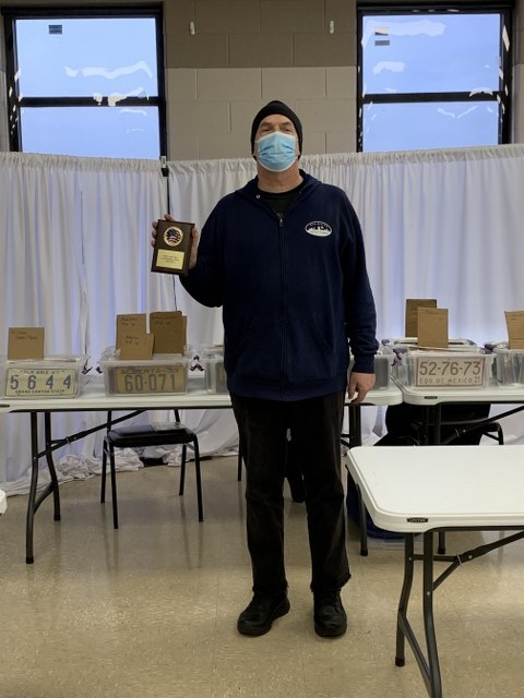 The February meet of 2021 took place Saturday, February 27, 2021, at Peotone. A total of 39 people were in attendance and there was a small assortment of individually wrapped snacks. Best Display award went to Daryl Williams for his early 100 years of Illinois plates. The Favorite Plate award went to Al Matulis, for his 1964 #64 plate. The long distance award went to Bennett Sizer from Michigan.