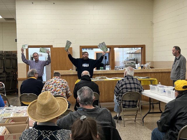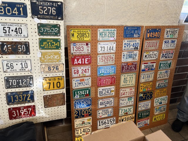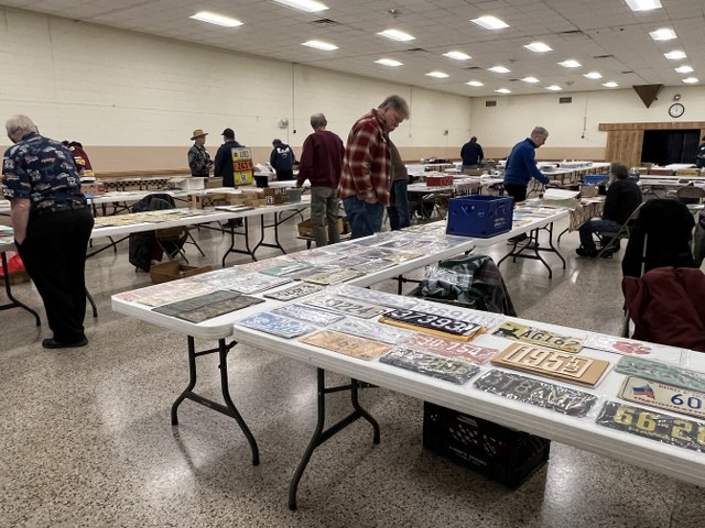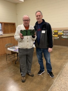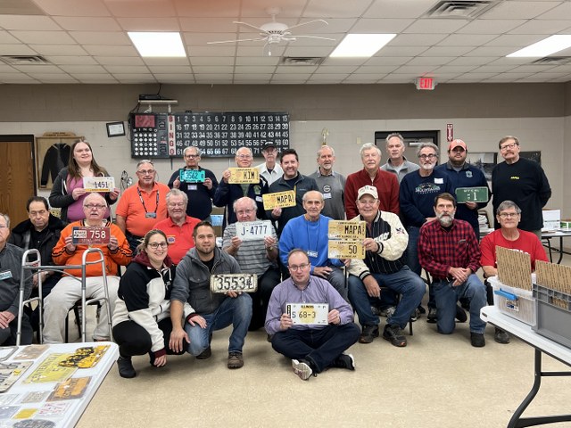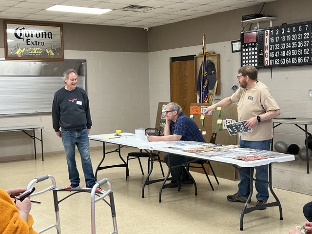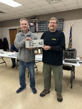 The February meet of 2020 took place Saturday, February 22, 2020, at Peotone. A total of 61 people were in attendance and there were plenty of breakfast food to go around. After a successful auction there were pizzas delivered for everyone. Best Display award went to Mike Dragas for his early 30's Illinois plates with toppers and frames. The Favorite Plate award went to Al Matulis, for his 1918 Indiana #7 plate. The long distance award went to John Willard from Philadelphia, a distance of 770 miles.