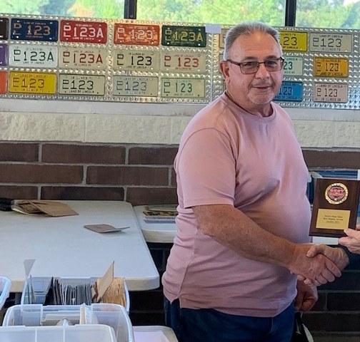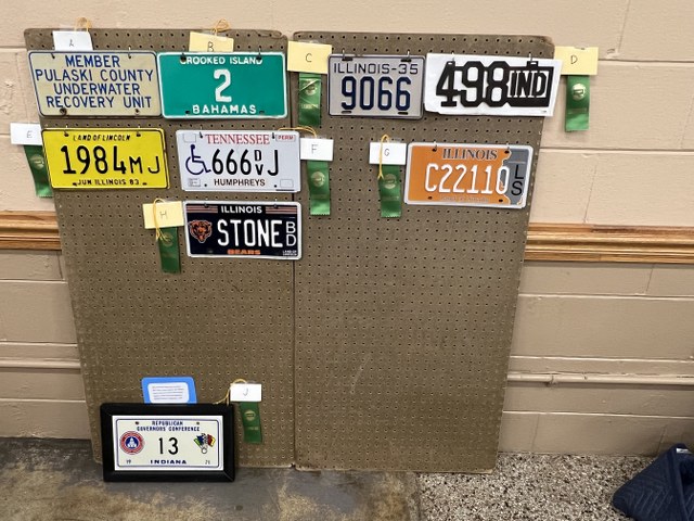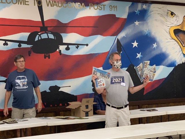The August meet of 2021 took place Saturday, August 21, 2021, at Wauconda. A total of 21 people were in attendance and there was a small assortment of donuts available. Best Display award went to Pat Settani for his Illinois low number plates. The Favorite Plate award went to Jason Stone for his Wisconsin tribal plate. The long distance award went to Chuck and CIndy Sakryd from Elyria Ohio.