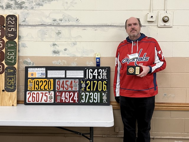 The Mid-America Plate Association held its Winter meet on February 24 in Peotone IL. The meet was attended by 46 ALPCA members with attendees from 6 different states and plenty of donuts were available for breakfast and pizza was served for lunch. Long distance was Jeff Fazekas from Arvada Colorado. Favorite plate was a 1962 Alabama Governor from Al Matulis. Tim O'Conner won the best display award for his porcelain New Jersey plates.
