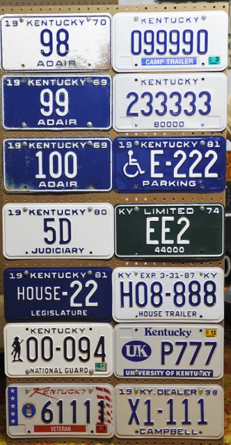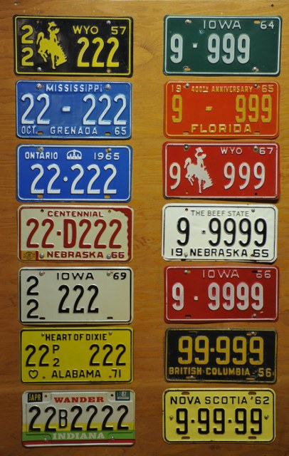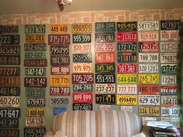 My license plate story begins in 1967, in a garage in Glenwood, Illinois. We moved from Indiana the year before and it was time to put on the new 1968 Illinois license plates. I ask my Dad if I could keep the 1967 Illinois plate, he said ok. And hence the saga of my plate collecting begins! After that first plate, I would ask neighbors, friends, and relatives if they had any old license plates. I’m not sure what it was about collecting license plates that drew them to me but at that time collecting was what most young kids did. I also collected baseball cards, football cards, bottle caps, coins, and stamps. These were just as hard to obtain as license plates at my age. Although I collected these other items, license plates won over time. Vacations with the family to Colorado, Michigan, and Kansas started my collection by a few plates here and there. Word of mouth continued to bring me license plates. The next door neighbor owned a currency exchange and he gave me quite a few plates. I think his idea was for me to sell the plates and to split the profits!